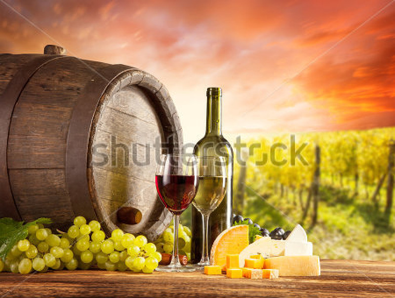 Фотообои с винной бочкой на фоне поля виноградников. Артикул 10008539.