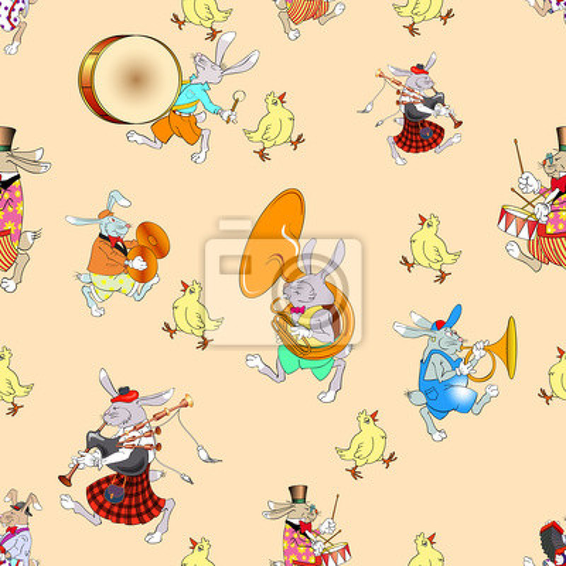 Фотообои - Кролики - музыканты и курочка артикул 10002729