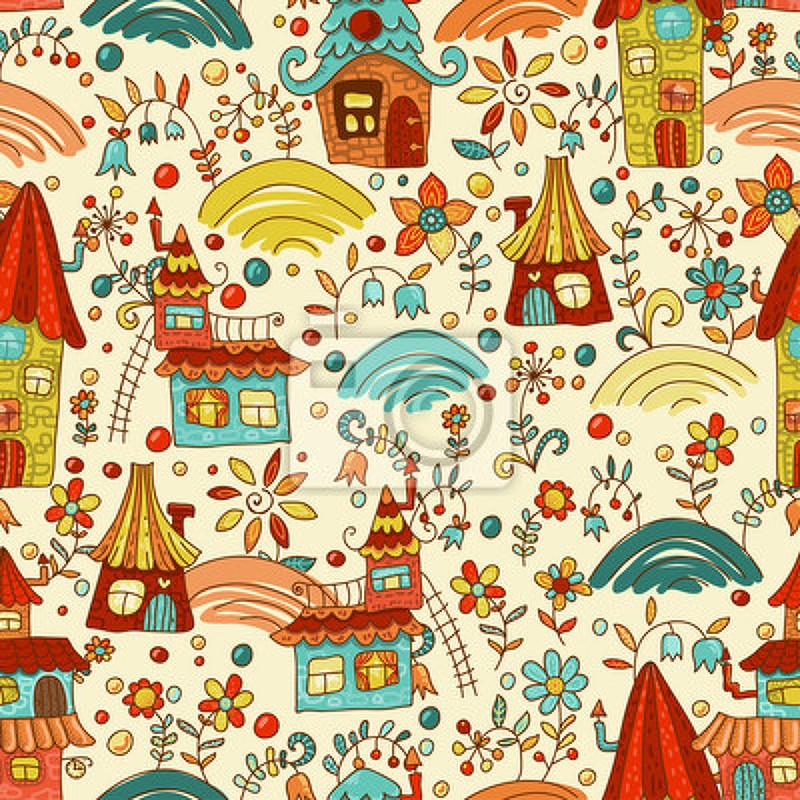 Фотообои - Сказочные домики с веселым орнаментом артикул 10003746