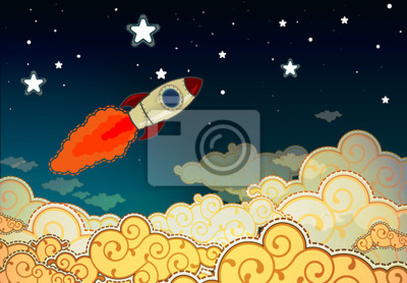 Детские фотообои - Рисунок с космическим кораблем. Артикул 10001450.