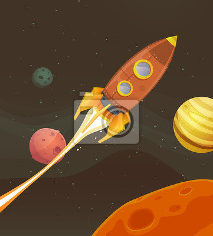 Фотообои - Ракета среди планет. Артикул 10003245.