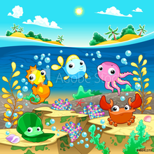Фотообои в детскую с обитателями морских глубин — черепахами и осьминогами, морскими звездами и китами — это еще и отличная дизайнерская находка для интерьера комнаты. Кроме того, синие и голубые оттенки стен детской комнаты гармоничным образом влияют на нежную и восприимчивую психику. Вы можете выбрать рисунок или фото и заказать обои на стену в детскую с подводным миром по своим размерам из огромного ассортимента каталога фотообоев с доставкой по России, который наглядно представлен в нашем интернет-магазине.