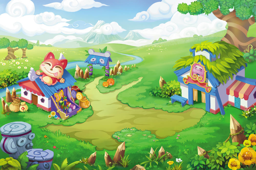 Детские Фотообои - Мультяшная деревушка. Артикул 10001312.