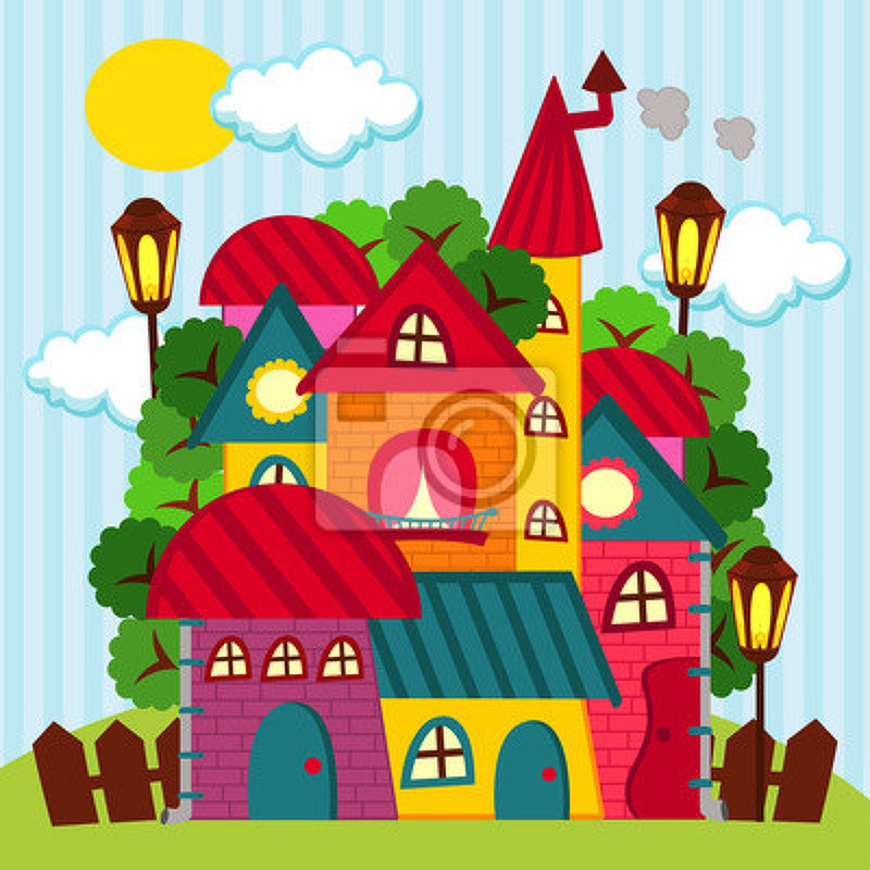 Фотообои - Дом с башенками и фонарями. Артикул 10002764.