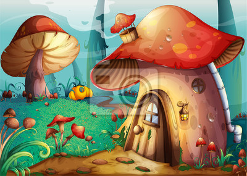 Фотообои - Грибной домик на полянке. Артикул 10002771.