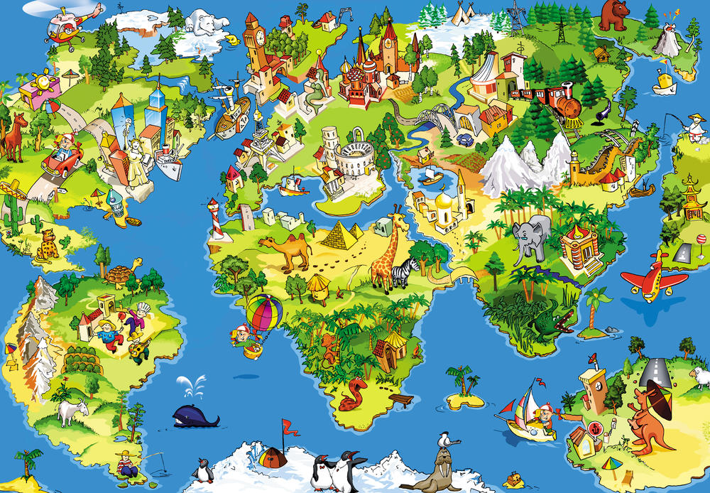 Фотообои - Карта мира для детей. Артикул 10002992.