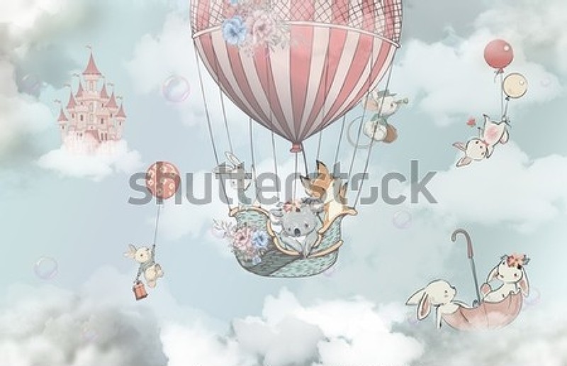 Обои в детскую — Звери на воздушном шаре. Артикул 10060819.