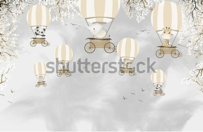 Обои в детскую с животными на воздушных шарах артикул 10060828