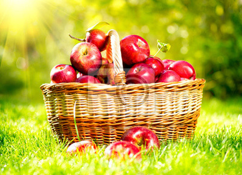 Фотообои для кухни с натюрмортом - Корзина с яблоками в саду. Артикул 10001749.