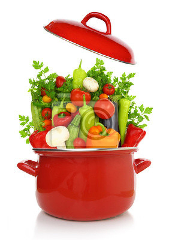 Фотообои для кухни - Овощи в красный кастрюле артикул 10003091