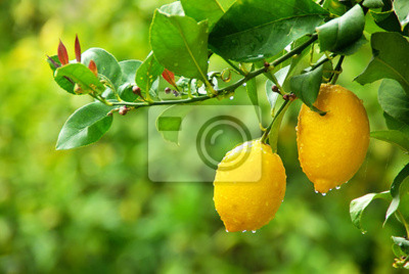 Фотообои - Желтые лимоны висящие на дереве. Артикул 10003383.