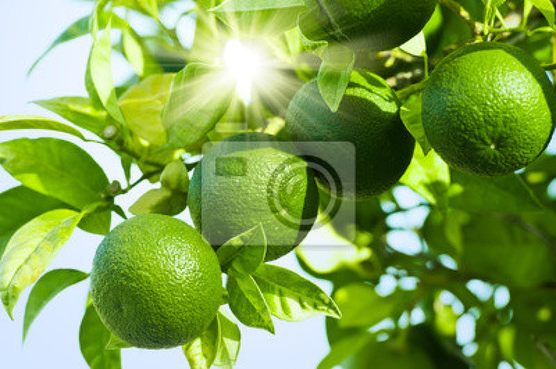 Фотообои - Зеленые лимоны на ветке. Артикул 10003422.