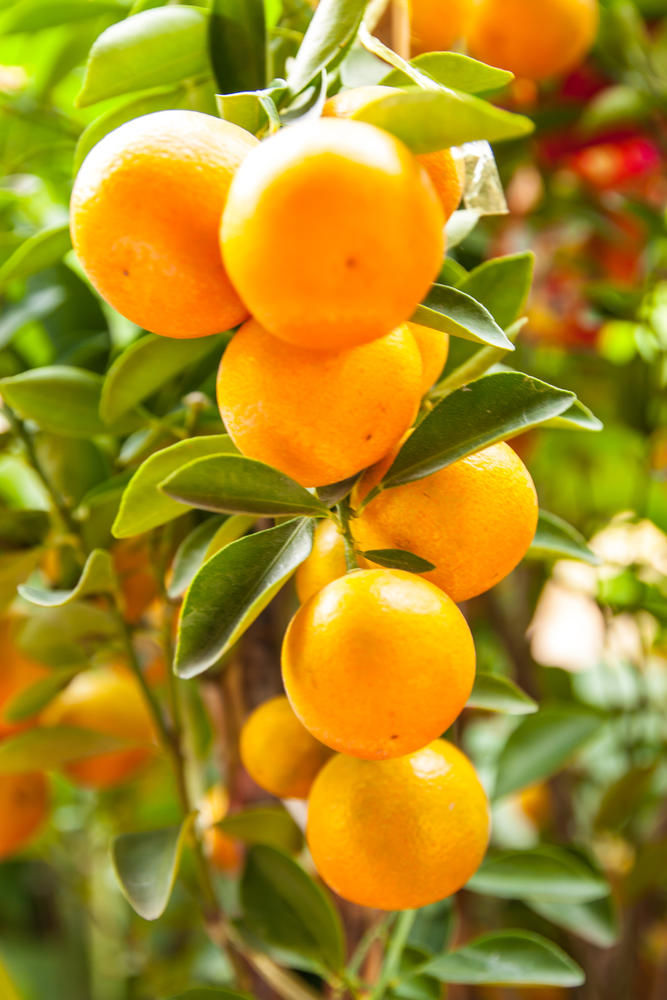 Фотообои с мандаринами и зелеными листьями артикул 10011063