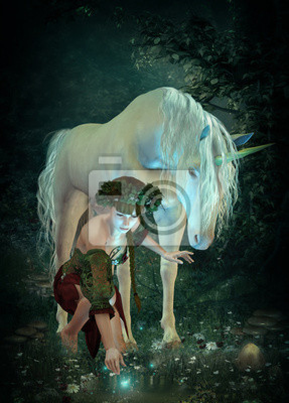 Фотообои - Девушка и единорог. Артикул 10003158.