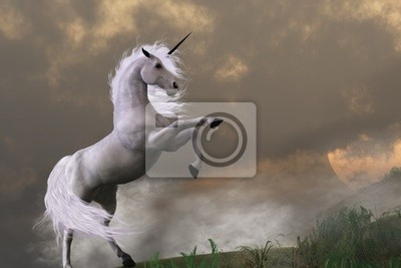 Фотообои на стену с единорогом на фоне туч. Артикул 10003424.