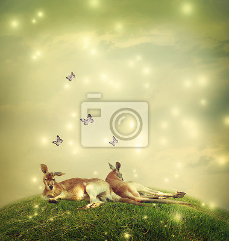 Фотообои - Волшебный пейзаж с кенгуру. Артикул 10002509.