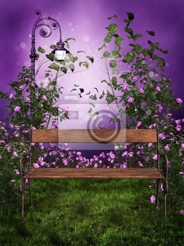 Фиолетовые фотообои со скамейкой артикул 10005126