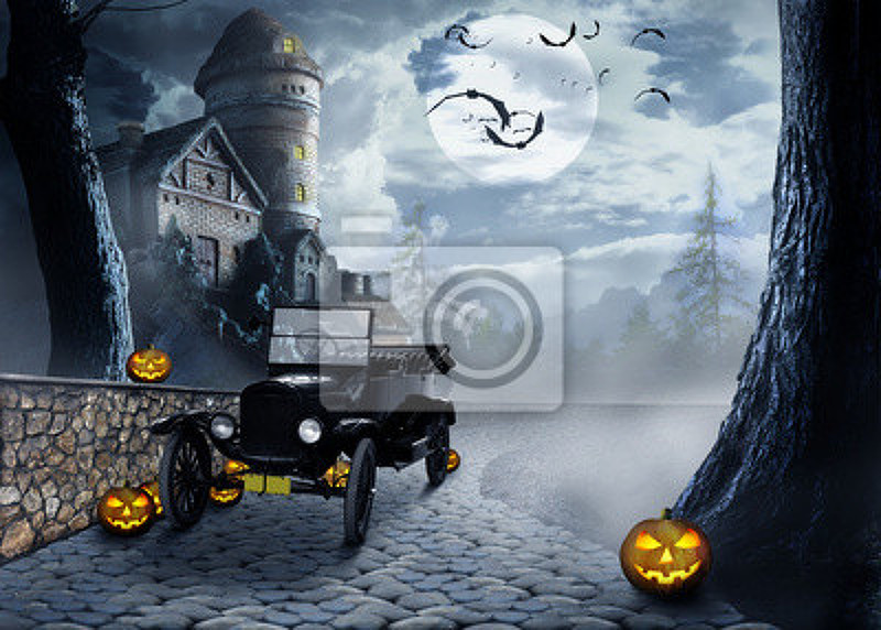 Фотообои - Vintage car among the pumpkins. Артикул 10008090.