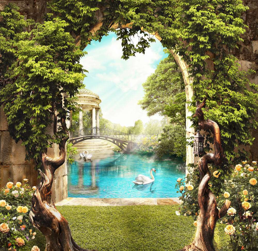 Арка с видом на пруд с лебедями артикул 10008408