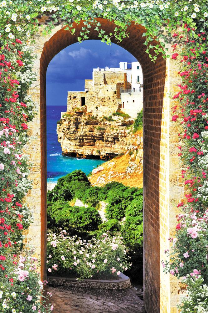 Узкая арка с видом на старинный город у моря артикул 10052762
