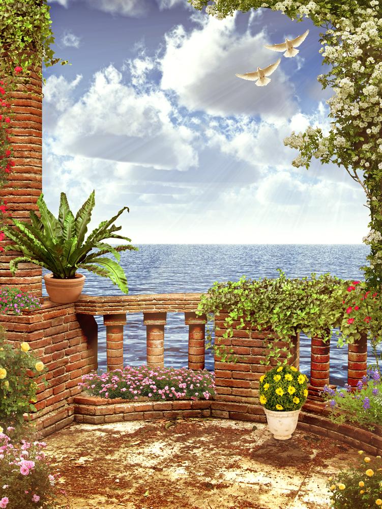 Фотообои с видом с балкона на море. Артикул 10051641.