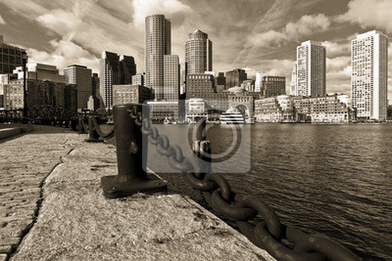 Фотообои с набережной в Бостоне (черно-белые фотообои). Артикул 10001320.