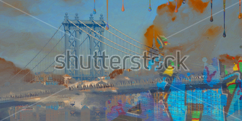 Фотообои - Манхэттенский мост в Нью-Йорке - Сюрреалистическое искусство. Артикул 10033832.