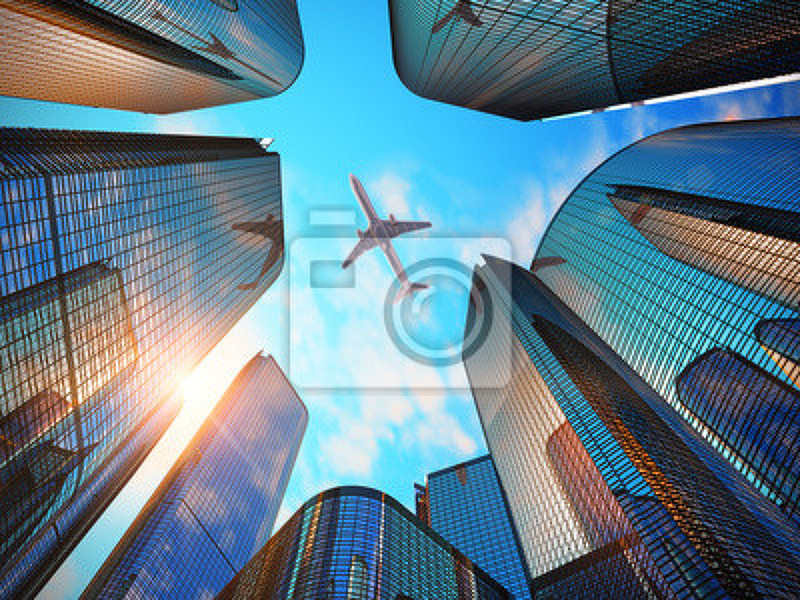Фотообои для потолка - Самолет и небоскребы. Артикул 10006405.