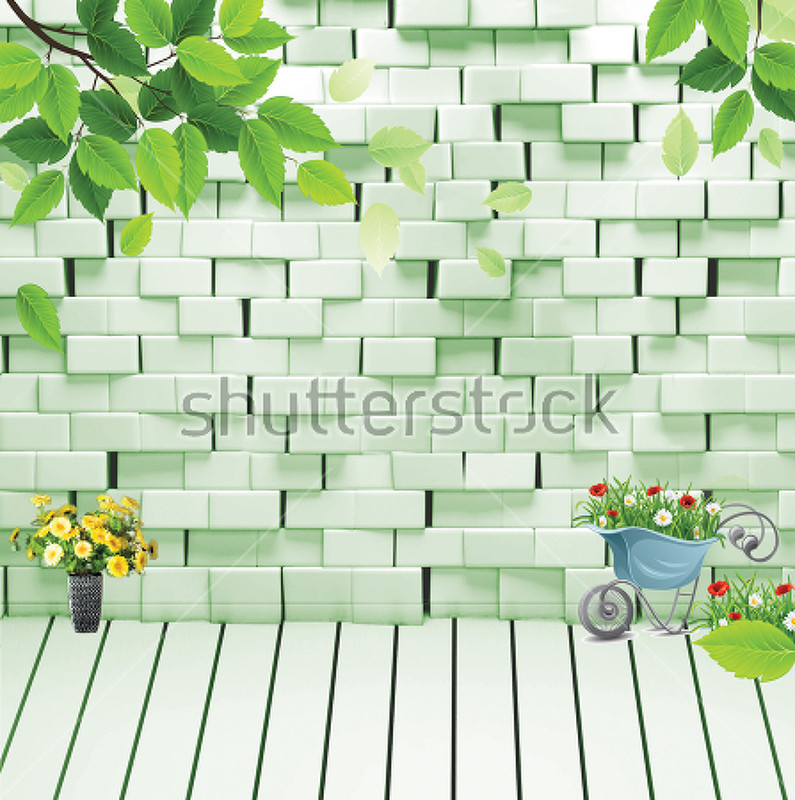 3Д Фотообои с листьями на кирпичной стене. Артикул 10021680.