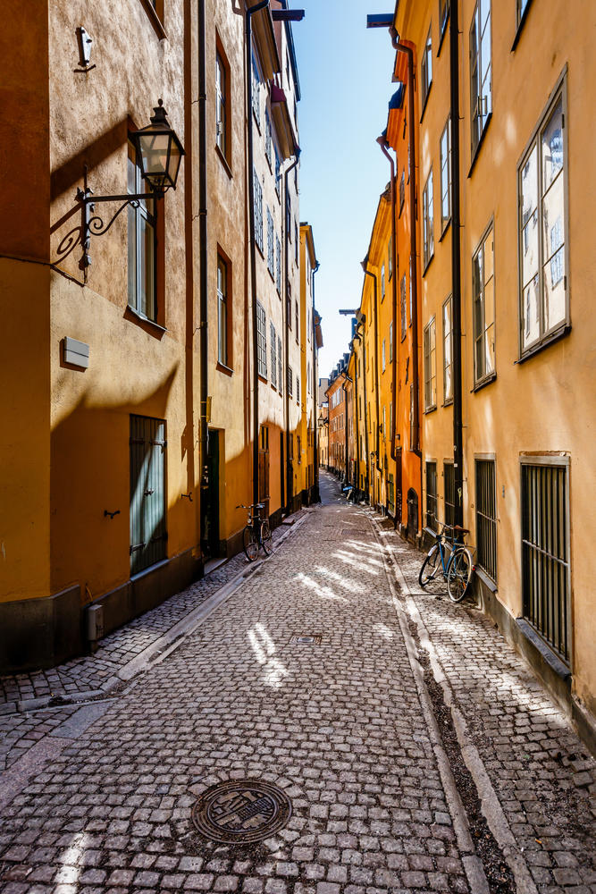 Фотообои с узкой улицей в Стокгольме артикул 10000139