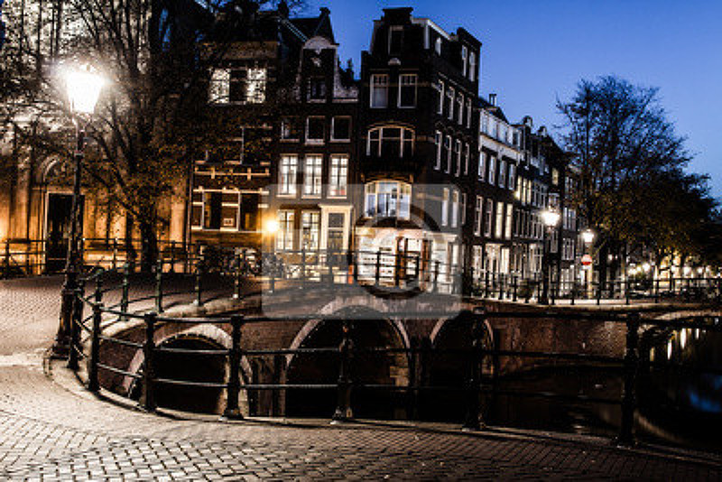 Фотообои на стену - Ночь в Амстердаме артикул 10001406