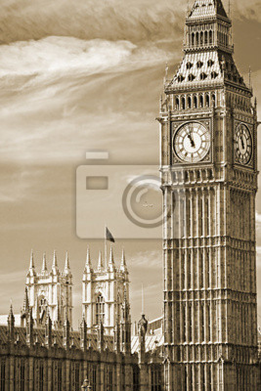 Фотообои с Биг-Беном в ретро стиле. Артикул 10001448.