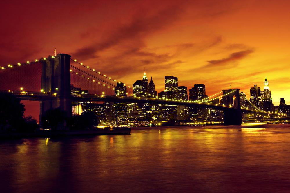 Фотообои с Бруклинским мостом на закате. Артикул 10000181.