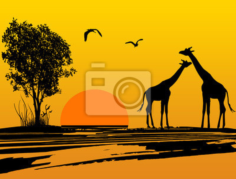 Фотообои - Жирафы на желтом закате. Артикул 10006610.