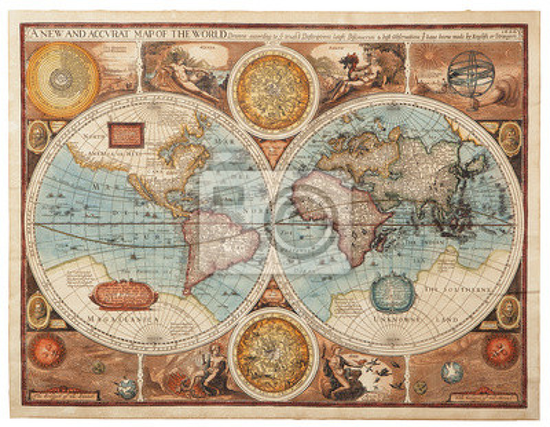 Фотообои со старинной картой мира (1626 г.). Артикул 10001832.