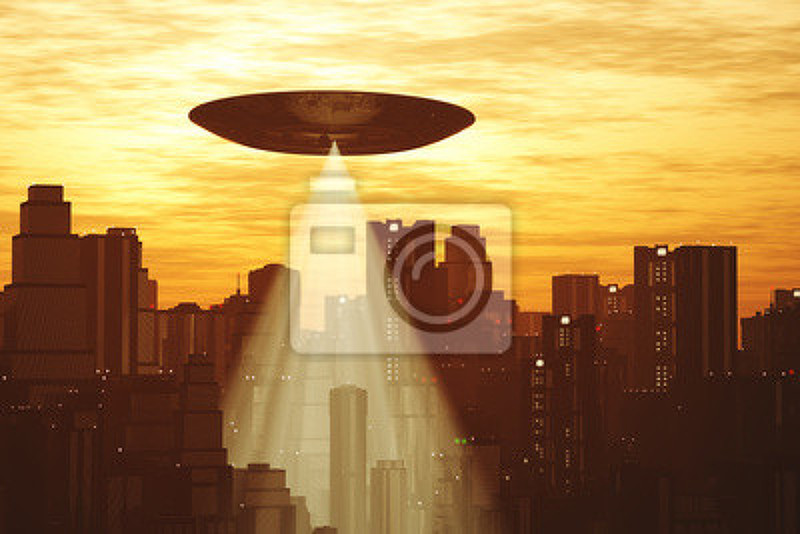 Фотообои - НЛО над мегаполисом. Артикул 10001470.