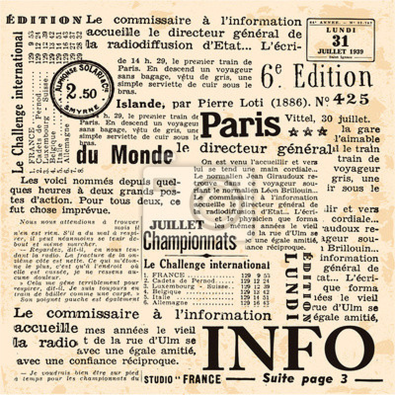 Фотообои с французской газетой артикул 10005235