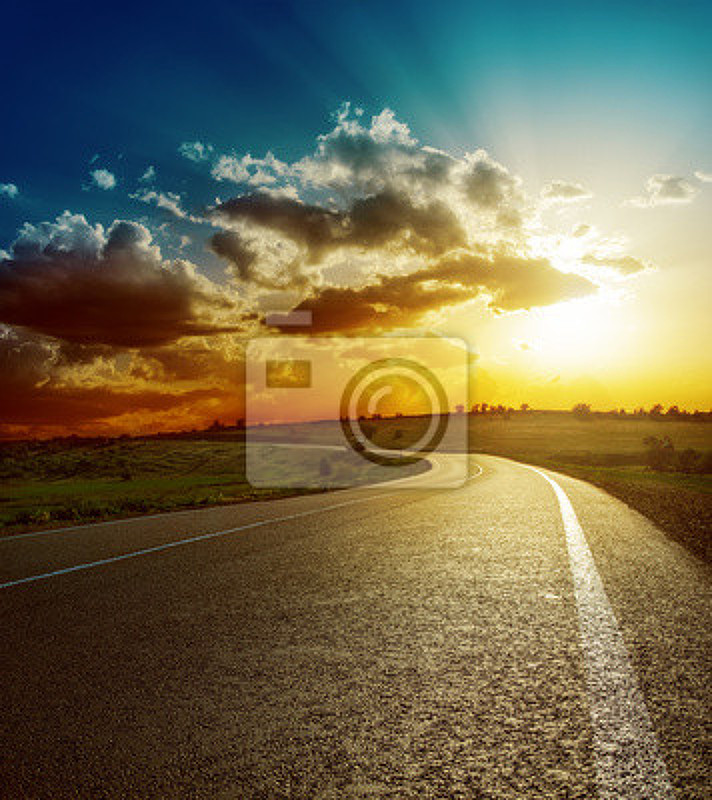 Фотообои на стену с дорогой на закате. Артикул 10001216.