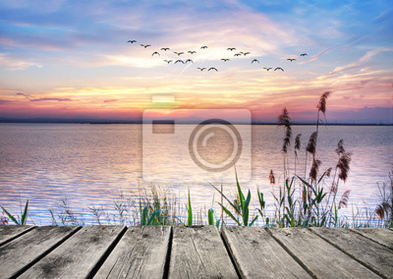 Фотообои - Нежный закат на озере. Артикул 10006498.