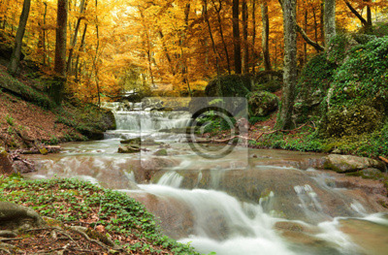 Фотообои - Водопад в осеннем лесу. Артикул 10005587.