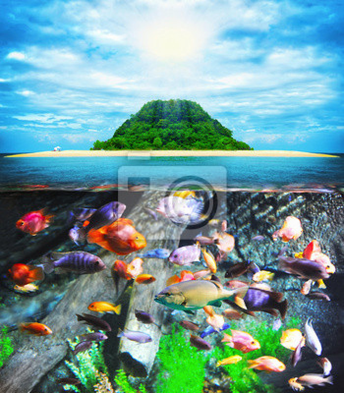 Креативные обои - Рыбки и остров артикул 10001821