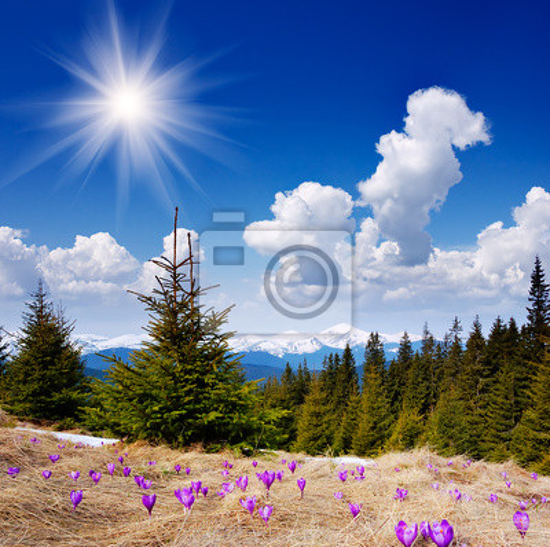 Фотообои - Горный пейзаж с крокусами. Артикул 10000969.