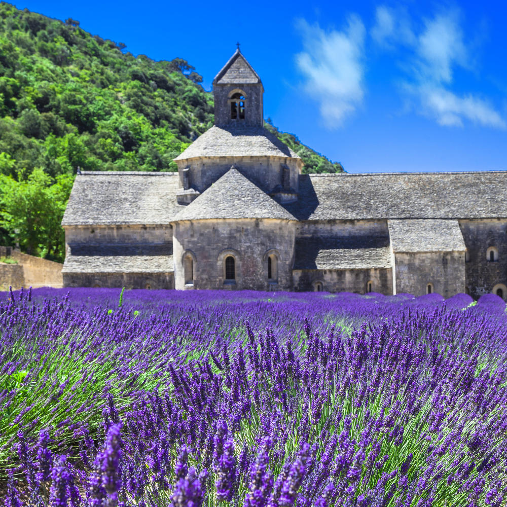 Аббатство де Сенанк с цветущим лавандовым полем. Артикул 10019768.