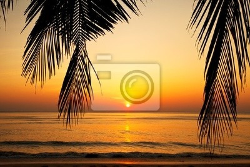 Фотообои с закатом на тропическом пляже артикул 10001577