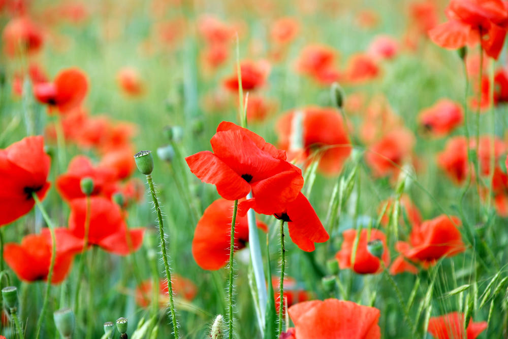 Фотообои с полевыми красными маками на лугу артикул 10001252