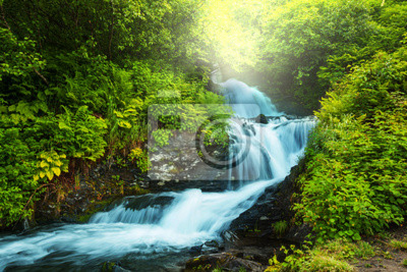 Фотообои с живописным водопадом в лесу. Артикул 10001011.