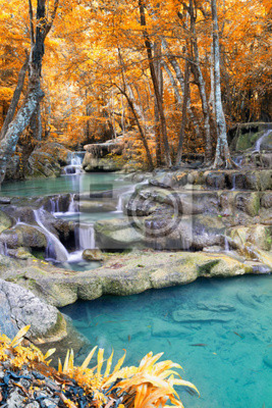Фотообои с лесным водопадом осенью. Артикул 10001221.