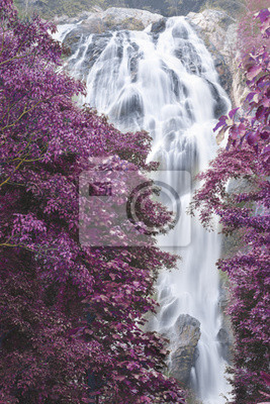 Фотообои на стену с водопадом и розовыми цветами. Артикул 10001920.