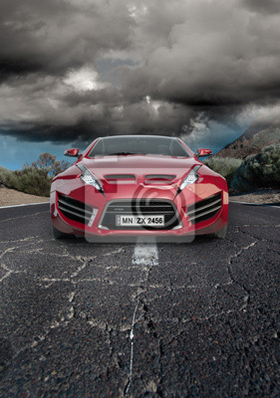 Фотообои "Красный автомобиль на дороге". Артикул 10002274.