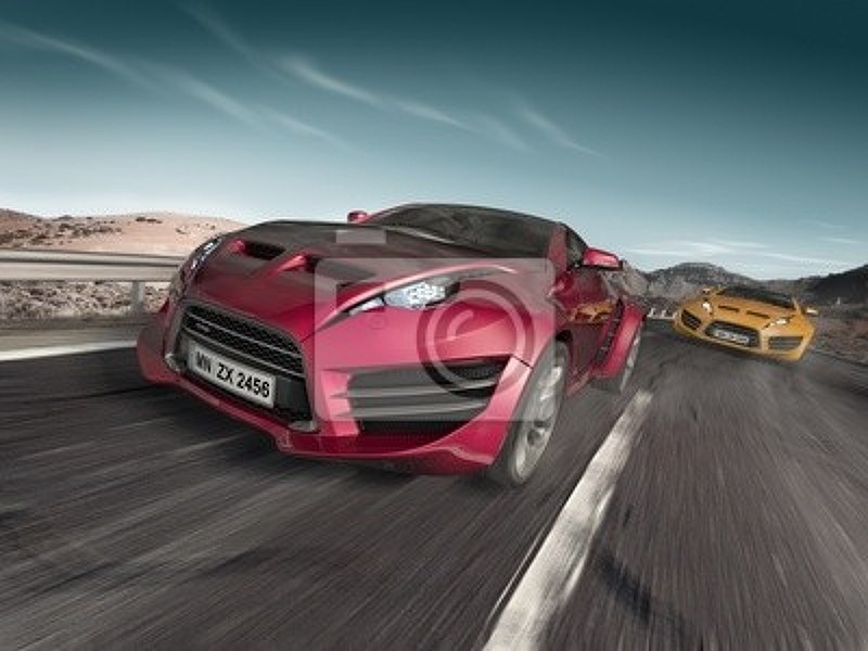 Фотообои со спортивными автомобилями на шоссе артикул 10002284